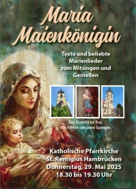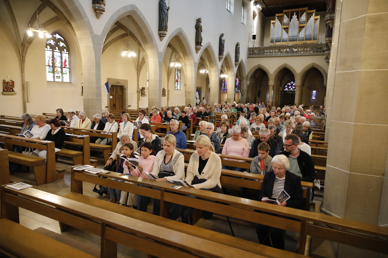 Mit seiner Liedauswahl traf Markus Zepp genau ins Schwarze. Dies zeigte sich zum einen an der mit gut 300 Besuchern sehr gut besuchten Pfarrkirche und zum anderen an der Inbrunst, mit der die Besucherinnen und Besucher die für den Gemeindegesang bestimmten Marienlieder mitsangen. Besucher aus Nah und Fern nahmen das einmalige Angebot war und strömten nach Hambrücken.