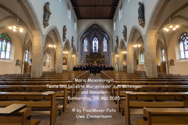 Unter dem Titel „Maria Maienkönigin“ boten die bestens aufgestellten Sängerinnen und Sänger Marienlieder zum Zuhören und Mitsingen dar. So erklangen neben dem „Sei gegrüßt viel tausendmale“, „Die Schönste von allen“ oder das „Ave verum - Stabat Mater“ von Karl Jenkins.