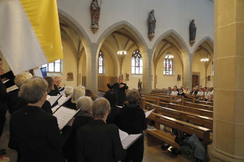 Der Katholische Kirchenchor St. Remigius und der Vocalitas aus Hambrücken sowie Sängerinnen und Sänger des Kirchenchors Wiesental begeistern mit Marienliedern in der Pfarrkirche.