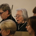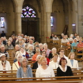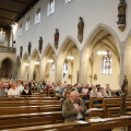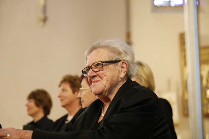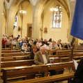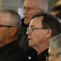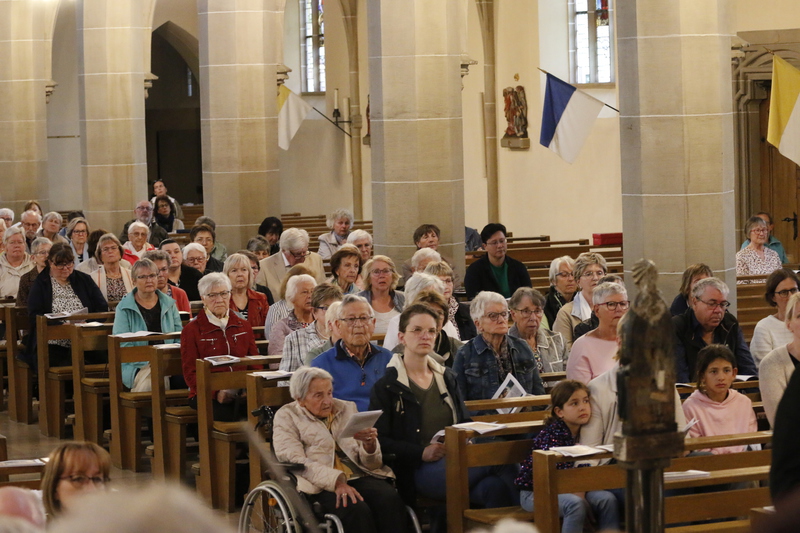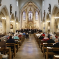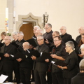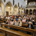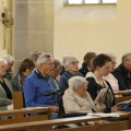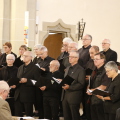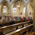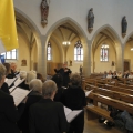 Im Mutterhaus angekommen, konnte sich die Sängerschar bei Kaffee und selbst gebackenem Hefezopf stärken. Danach ging es in die Kirche des Mutterhauses. Nach dem Einsingen begann um 10 Uhr der Gottesdienst in der vollbesetzen Kirche. Dieser wurde von Weihbischof Dr. Würz geleitet, der mit Bischoff Emeritus Schick aus Bamberg noch einen weiteren Zelebranten hatte.