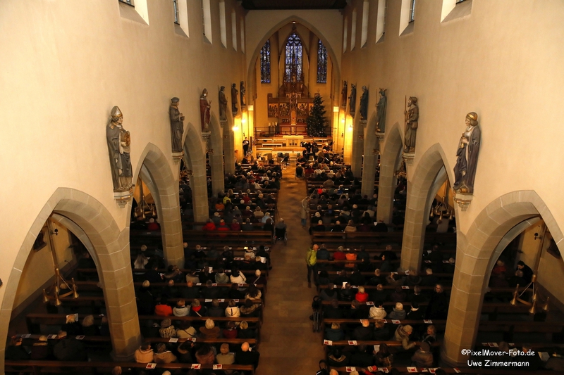 Mit seiner Liedauswahl traf Markus Zepp genau ins Schwarze. Dies zeigte sich an denrund700 Besuchern aus Nah und Fern. Die Begeisterung der Musizierenden übertrug sich rasch auf die anwesenden Gäste. Zusammen mit der Illumination der Kirche als Konzertraum verwob sich die Musik und Illumination zu einem einmaligen Klang- und Augenschmaus.